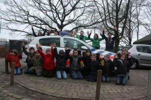 De volgende dag bij het ontbijt kwam ineens de politie binnenwandelen… Hij vertelde ze over zijn werkzaamheden, zijn collega’s en de verschillende teams van de politie. Hij liet zelfs een kogel zien! Hij mocht er natuurlijk niet mee schieten, maar laten zien mocht gelukkig wel. Na het gezellige vragenuurtje gingen ze nog even bij de politie-auto kijken en mochten ze hiermee op de foto: Zie hier het resultaat.
